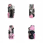Handmade “junk style” design. Premium rhinestones + high shine embellishments. 3D charms, roses, and dimensional detailing.